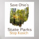 Poster designed by Artist, MJ Erard. Ohio Parks are at risk. Save Ohio's State Parks from the Kasich Administration.