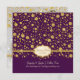 Save the Date announcement that is perfect for an upcoming winter wedding. Your engagement photograph is on the reverse side for a wonderful family keepsake of your getting engaged! NOTE: This is a flat printed invitation, there is no glitter or metal foil used. Effects are graphically produced. DESIGN COLLECTION: Elegant, sparkly, fun wedding celebration in the works? This random sized polka dots confetti Save our Date card let's your guests know a party is happening! Gorgeous luxurious multi sized glittering golden sparkles rain down in random patterns with twinkling sparkle stars. Perfect for a wide range of ceremony styles, from formal black tie to rustic country, outdoors under the twinkling lights. You can customize this for any type of party or occasion by changing the easy to use template fields. Colors: deep dark eggplant violet purple and gold