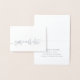 Save the date announcement featuring the phrase "save our date" in real foil script on the front and upcoming wedding details on the inside.