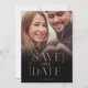 Modern and minimal save our date photo save the date card. The design features a modern full photo to display your own special photo. "Save our Date" is displayed in a modern faux rose gold foil typography design with names and new wedding date. The black gradient photo overlay adds a luxury look.