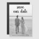 Magnetic photo save the date featuring your full bleed vertical picture and a text overlay with the words, "save our date" in a thick black script handwriting at the top. At the bottom are your names and date. The text may be changed to any color you wish. A simple and modern design that makes your photo the main feature.