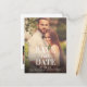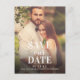 Make a lasting first impression with this striking save our date, where bold graphic typography commands attention across a full-bleed couple photo. The mailable reverse features a second inset photo alongside your names, date, location, and website — a distinctive double-sided touch that guests won't forget. A confident, modern design that works beautifully for any wedding style. Fully customizable with your names, date, and photos.