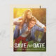 Postcard announcement of your wedding date. Use your full vertical image with "Save our Date" over your photo. A black gradient appears along the bottom of the card to make the type stand out. If you don't need the gradient, just eliminate it (or click on eye to turn it off). Customize your names and date on front and back. There is another card with a white gradient with dark type available.