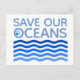 Save Our Oceans Blue Stylized Earth Waves Postcard