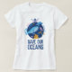 Spread awareness about the protection of our oceans and marine life with this beautiful t-shirt featuring an illustration of our planet with sea animals (whale, sea turtle, octopus, fishes, coral, and crab) with the customizable caption "Save our oceans" in a blue all-caps font
