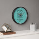 The size of the clock is dramatic and the abstract alcohol ink design is soothing and intricate at the same time. I chose the black frame that adds pop to the blue and gold design. The gold printing would be better in a slightly darker or larger font. I love it and I’m looking for just the right place in ny new apartment. I would recommend this clock for a personal gift or a present. I feel that the quality is excellent for the money! I’m a bit of a clock nut so I’m pretty particular about my purchases. The clock is larger in diameter than many if the clocks I have, so it stands out very well. I think a slightly darker printing color and a moderately larger size would best suit a professional decor or add more impact in a work place item.
