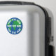 Save planet earth fridge magnet with custom text. Blue and green world map globe logo with white text template. Create a magnets for global warming, climate change environmental issues, nature preserve, green energy, forrest protection, protests, plastic soup, recycle, recycling etc. Land sea drawing. Save the planet, save the earth! Customize with your slogan or saying.