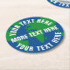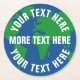 Save planet earth world map custom drink coasters. Round coaster with custom text. Blue and green globe logo with white text template. Create coasters for global warming, climate change, environmental issues, nature preserve, green energy, forrest protection, protests, recycle, recycling, international travel etc. Land sea drawing. Save the planet, save the earth! Use for wedding, gathering, bar , pub, cafe, restaurant, dinner party, Birthday etc.
