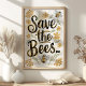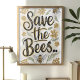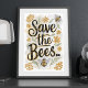 Raise awareness and promote bee conservation with this charming "Save the Bees" wall art. The design features bold hand-lettered script surrounded by bees, flowers, and honeycomb patterns in warm yellows and greens, making it perfect for nature lovers and eco-conscious individuals. Ideal for home decor, classrooms, or as a thoughtful gift, this artwork serves as a beautiful reminder of the crucial role bees play in our ecosystem.