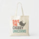 SAVE THE CHUBBY UNICORNS, tote bag. Bold colorful typography with rhinoceros.