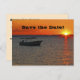 A photograph of a silhouette of a fishing boat at sunset, with a vivid orange sky, decorates this unique and fun 75th Birthday "Save the Date" postcard. The reverse has black lettering on an ivory background. You can easily CHANGE the NAME, AGE, EVENT, DATE, etc. Matching postage stamp for postcards is zazzle.com product 172091251412801076. Original photograph by Marcia Socolik. All Rights Reserved © 2014 Alan & Marcia Socolik.