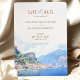 Introduce your upcoming wedding with this charming watercolor destination "Save the Date" card, featuring a stunning depiction of the Amalfi Coast, Italy. The card is adorned with a beautiful blend of soft hues, including azure blue, emerald green, delicate lavender, and sandy beige. The serene watercolor scene captures the essence of the Italian coastline with its dramatic cliffs and quaint village, inspiring a sense of romance and adventure. Perfect for couples planning a destination wedding, this card elegantly conveys the allure of your chosen location. Personalize with your details to create a lasting impression.