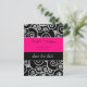 Hot pink and black swirls make this a fun save the date.