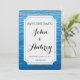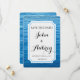 The matter paper is our sample of choice -- it's a reasonably priced, good quality, nice feeling paper stock. We were a little concerned the muted rustic blues might not reproduce all that well (usually by light colored samples), but they're just gorgeous! The white lettering is perfect in combination with the blue background, and the typography is all easy to read.