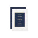 This elegant and modern Save the Date card features an illustration of starfish and sand dollars as well as a gold frame and gold accents. The text can be customized to your liking. A beautiful and classy way to have guests save the date for your beachy or nautical theme wedding.
