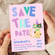 Mark your calendars with this adorable Save the Date card for a birthday party! Featuring a playful cat in glasses and a party hat on a pastel pink background with bold, colourful lettering, this design is perfect for kids’ birthdays and fun party announcements. Easily personalise with your child’s name, event details, and date. A cheerful way to let friends and family know to save the date before invitations go out!