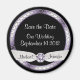 Mark the date for your guests with this elegant save the date wedding announcement magnet in black, white and silver. Printed image features a silver look heart embossed round frame and a jeweled ribbon for a classy touch. Graphic by Zaza at Scraps and Tubes.