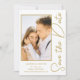 Save The Date Black Gold Stylish Script Modern Wedding Cards features a white background with your custom photo. Personalize with your text by editing the text in the text boxes provided. Designed for you by ©Evco Studio www.zazzle.com/store/evcostudio