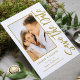 Save The Date Black Gold Stylish Script Modern Wedding Cards features a white background with your custom photo. Personalize with your text by editing the text in the text boxes provided. Designed for you by ©Evco Studio www.zazzle.com/store/evcostudio