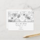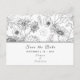 A simple and elegant wedding "Save the date" invitation featuring modern line art. Hand drawn black and white flower pattern of daisies and roses and ferns. Customize the text and delete what you do not require.