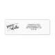 Save the Date return address label black and white with elegant script typography.