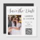 Save The Date Black White Stylish Script Modern Wedding Magnetic Card features a white background with your custom photo. Personalize with your text by editing the text in the text boxes provided and add your website URL for your custom QR code. Designed for you by ©2025 Evco Studio www.zazzle.com/store/evcostudio