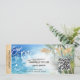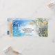 Destination Beach Wedding Boarding Pass Ticket Gold Plane Save the Date with Cruise Ship icon with tropical leaves. Add your QR Code
