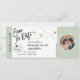 Destination Beach Wedding Boarding Pass Ticket Gold Plane Save the Date with heart and plane icon with simple minimalist line art world map and sage green background color.