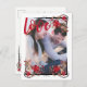 Romantic Roses and Love Save the Date postcard. The front side frames your favorite couple's photo with roses, Victorian accents and the word love written in a bold and open deep red script. The back side of the Save the Date postcard has the same red roses and Victorian corner accents with the phrase Save the Date written in the same red font as love. You can easily add your wedding info and return address.