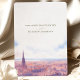 Announce your wedding with this elegant watercolor destination "Save the Date" card, featuring a beautiful depiction of Bordeaux, France. The card showcases a harmonious blend of soft pastel colors, including dusty pink, lavender, sky blue, and warm beige. The detailed watercolor artwork captures the charm of Bordeaux's historic skyline and iconic architecture, evoking a sense of romance and sophistication. Ideal for couples planning a destination wedding, this card sets a refined and inviting tone for your special day. Customize with your wedding details for an unforgettable first impression.