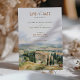 Announce your wedding with this rustic watercolor destination "Save the Date" card, featuring a stunning depiction of Borgo di Castelvecchio, Tuscany, Italy. The card showcases a harmonious blend of soft earthy hues, including olive green, golden beige, and warm terracotta. The detailed watercolor artwork captures the essence of the Tuscan countryside with its rolling hills, cypress trees, and charming villas, evoking a sense of romance and rustic elegance. Perfect for couples planning a destination wedding, this card sets an inviting and picturesque tone for your special day. Customize with your wedding details for an unforgettable first impression.