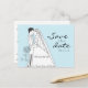 Save the date postcard with bride and groom. For invitation designs, check out my website: www.darmanddesigns.com.