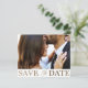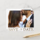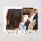 This elegant save the date announcement is the perfect way to kickstart your wedding plans. Featuring a photo template and bold "Save the Date" typography in luxurious faux metallic gold on a clean white background, it exudes sophistication and style. Personalize it with your own details to create a memorable announcement for your special day.