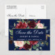 Save the Date Burgundy Floral Blue Gold Frame Announcement Postcard