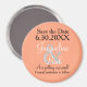 Fresh cantaloupe color summer inspired wedding. Personalize Save the Date with Bride and Groom's Names in white script and Wedding Date. Designs by TamiraZDesigns.