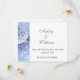 Save the Date Card is shown in a classic formal layout in the color White with Gray text and script text highlighting the Bride and Groom names and accented with a lavender blue hydrangea flowers photo print. Upgrade to White Ice Metallic Shimmer if you prefer. Customize this wedding invitation by clicking on the customize button, go to the right to the text boxes and change the appropriate text to yours.