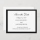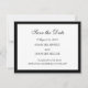 Save the date card is shown in a classic but modern layout on basic paper in the color white with black text and borders.