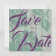 This Save the Date Card offers an elegant oversized plum colored font with transparent background layers of green roses and green and pink stripes, all the copy is editable, click the Personalize button to make this your own, enjoy!