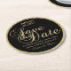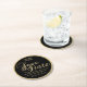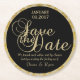 Save the date coasters custom designed champagne damask with black panel overlay and golden save the date typography. Personalized with an inspiring quote of how the couple met. "We found each other not by chance, but by creating the feeling as if." A unique way to announce your wedding day that may be customized to fit your party theme.