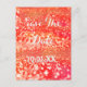 Save The Date Coral and Pink Sparkle Announcement Postcard