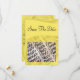 This Elegant "Save The Date" announcement with matching items is designed with a broken yellow spiral digital art background and a complementary color wavy banner across the top front. The design can serve for any occasion when you fill in the template fields with your details, remove unwanted information and/or click the orange Customize it! button to select a font style, size and color you prefer on the front and back. On the front, replace the template photo with your photo and it's done.