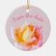 Beautiful save the date custom text and background color ornament with lovely pink roses