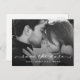 This simple and stylish wedding save the date photo postcard features delicate, white elegant modern script with your favorite personal photo. Further wedding details and information can go on the back, with a minimalist black and white design.