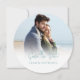This design features an save the date photo card, perfect for destination weddings, with a simple, elegant, classy, unique, sand dollar design perfect for any beach wedding, with an elegant photo template
