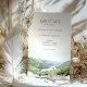 Announce your wedding with this charming watercolor destination "Save the Date" card, featuring a picturesque depiction of the Douro Valley, Portugal. The card showcases a beautiful blend of soft pastel hues, including lush green, tranquil blue, and earthy beige. The detailed watercolor artwork captures the essence of the Douro Valley's rolling vineyards and serene river, evoking a sense of romance and elegance. Perfect for couples planning a destination wedding, this card sets a sophisticated and inviting tone for your special day. Customize with your wedding details to create an unforgettable impression.