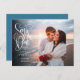 This simple, elegant script photo save the date card features your photo and a script save the date above your names, date and venue. You can personalize the color on the reverse to suit or add a message. Designed by Thisisnotme©