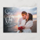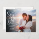 This simple, elegant script photo save the date card features your photo and a script save the date above your names, date and venue. The reverse features your wedding details and wedding website QR code. Designed by Thisisnotme©