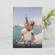 This modern photo save the date card features your special photo overlayed with an elegant script save the date above your names, date and venue in white text. Designed by Thisisnotme©