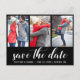 Modern Save The Date Engagement Couple 3 Photo Postcard Black