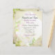 Soft muted pastel colors of flowers as the backdrop on a white diamond super imposed in the backround with a lighter green shade around the corners. Classy spring themed wedding invite with elegant grey and lavender fonts.